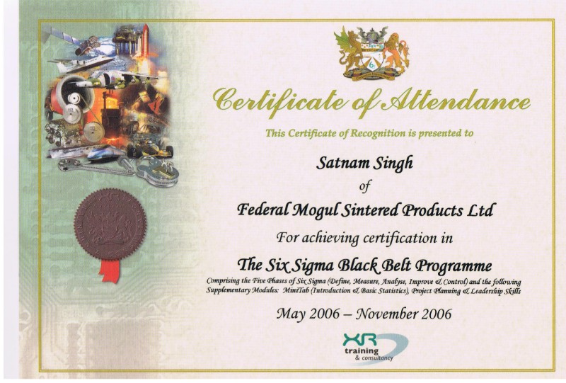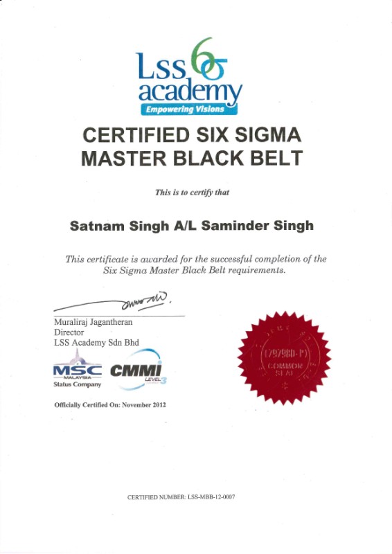 Number of Six Sigma Projects Completed in a Black Belt/Master Black Belt Role (Lifetime): 100+