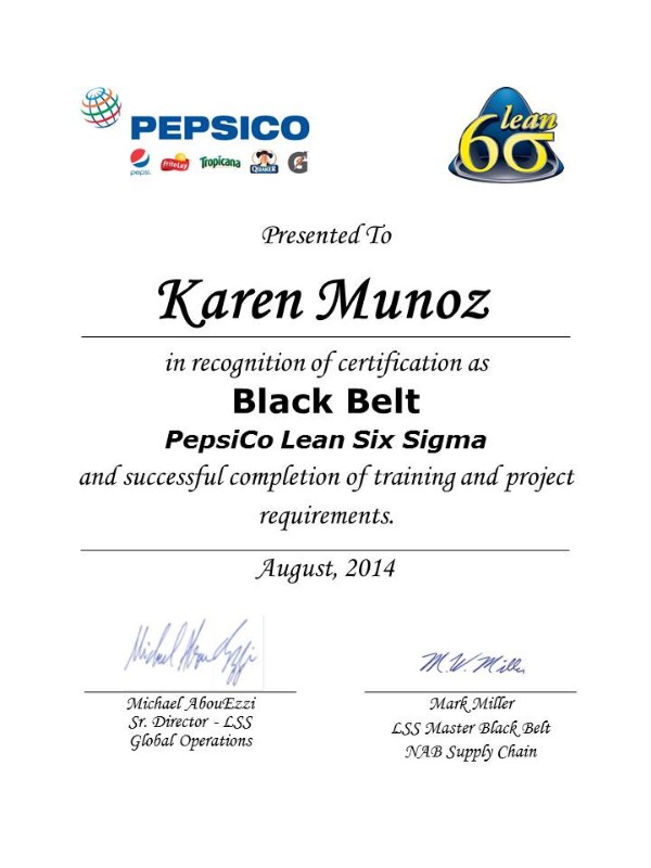 Number of Six Sigma Projects Completed in a Black Belt/Master Black Belt Role (Lifetime): 100+