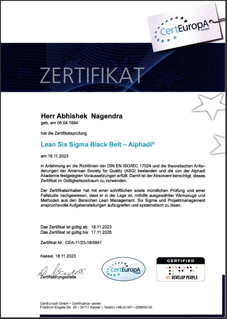 Number of Six Sigma Projects Completed in a Black Belt/Master Black Belt Role (Lifetime): 3