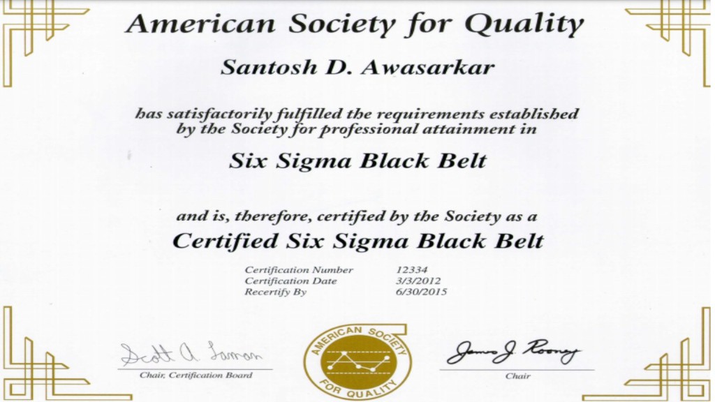 Number of Six Sigma Projects Completed in a Black Belt/Master Black Belt Role (Lifetime): 100+