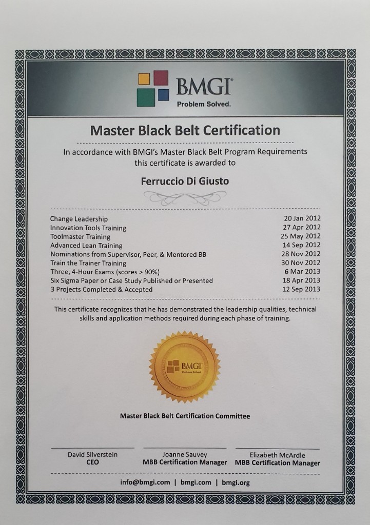 Number of Six Sigma Projects Completed in a Black Belt/Master Black Belt Role (Lifetime): 100+
