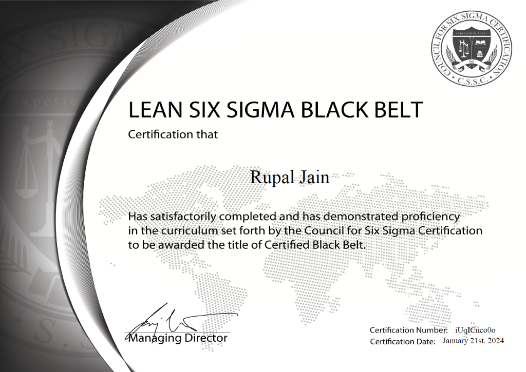 Number of Six Sigma Projects Completed in a Black Belt/Master Black Belt Role (Lifetime): 11-20