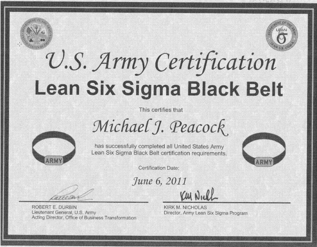 Number of Six Sigma Projects Completed in a Black Belt/Master Black Belt Role (Lifetime): 100+