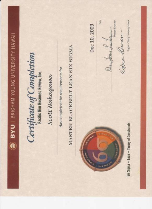 CSSC (Black Belt) BYU Hawaii (Master Black Belt)